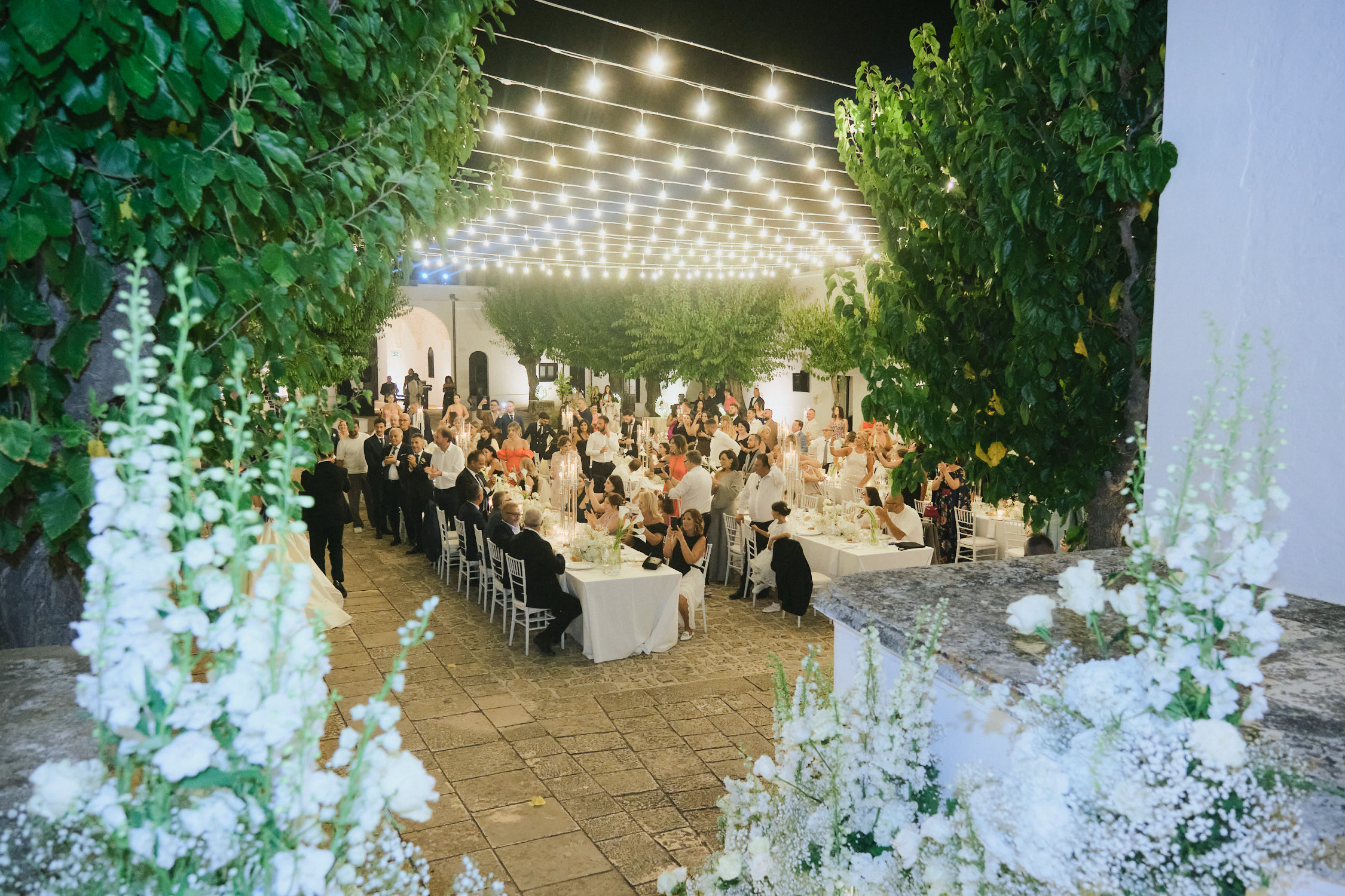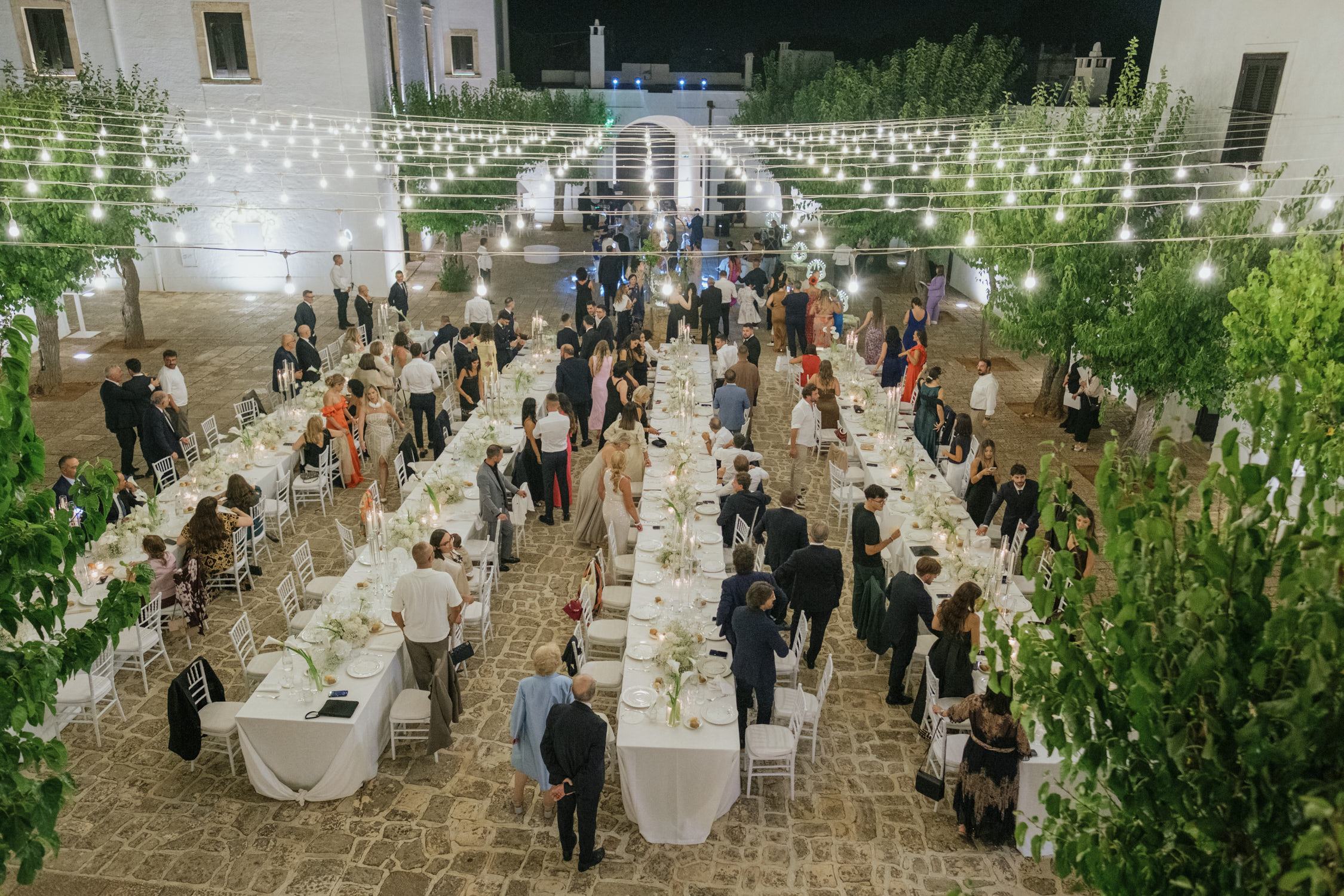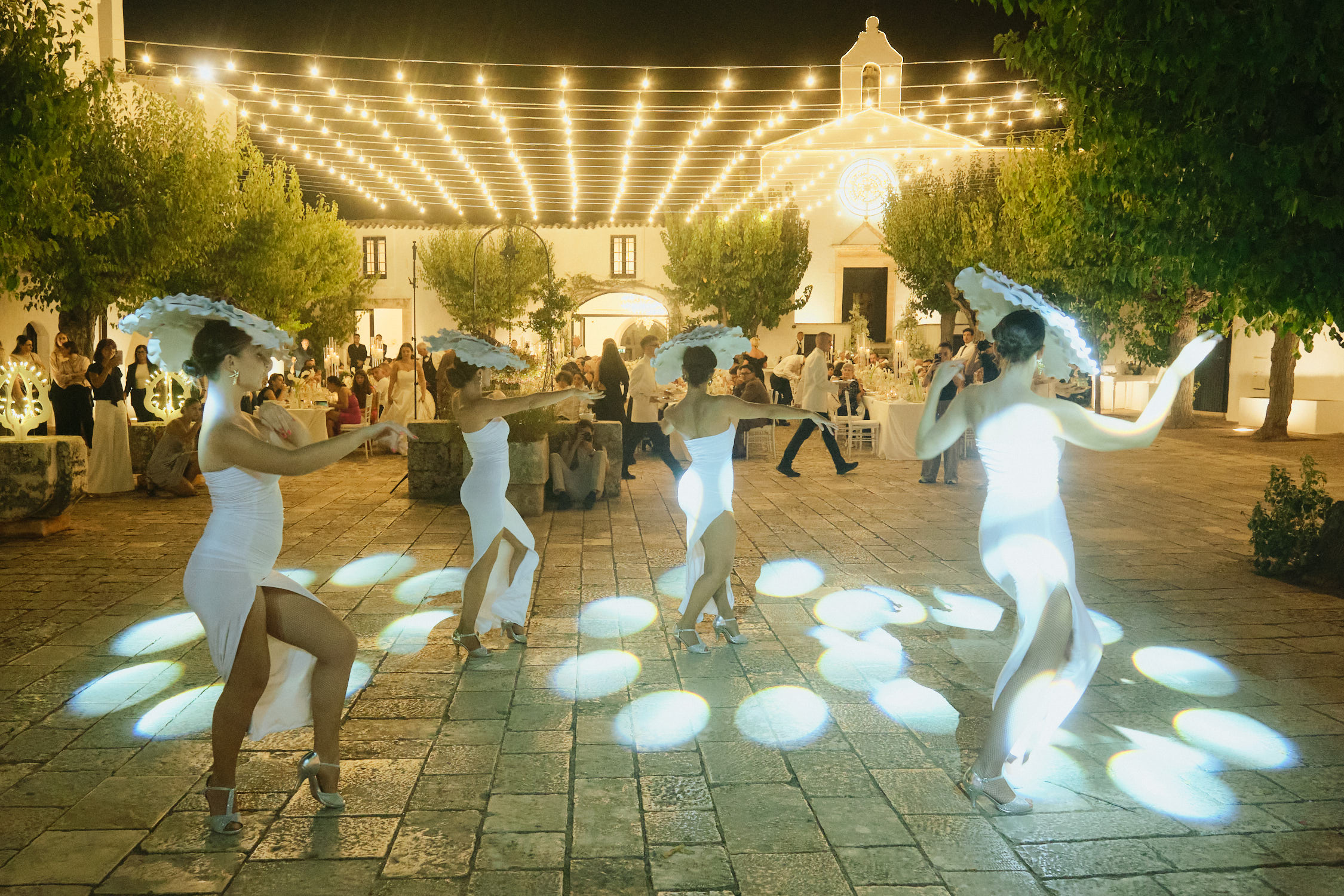 Per il loro matrimonio hanno scelto Ostuni come cornice e Masseria Montalbano come cuore della festa. Insieme a Serena Lobbene, la wedding planner che li ha accompagnati nell’intero percorso, hanno immaginato e costruito un evento popolato di artisti e di coreografie magiche, capaci di trasportare tutti in un vero e proprio mondo di bellezza.