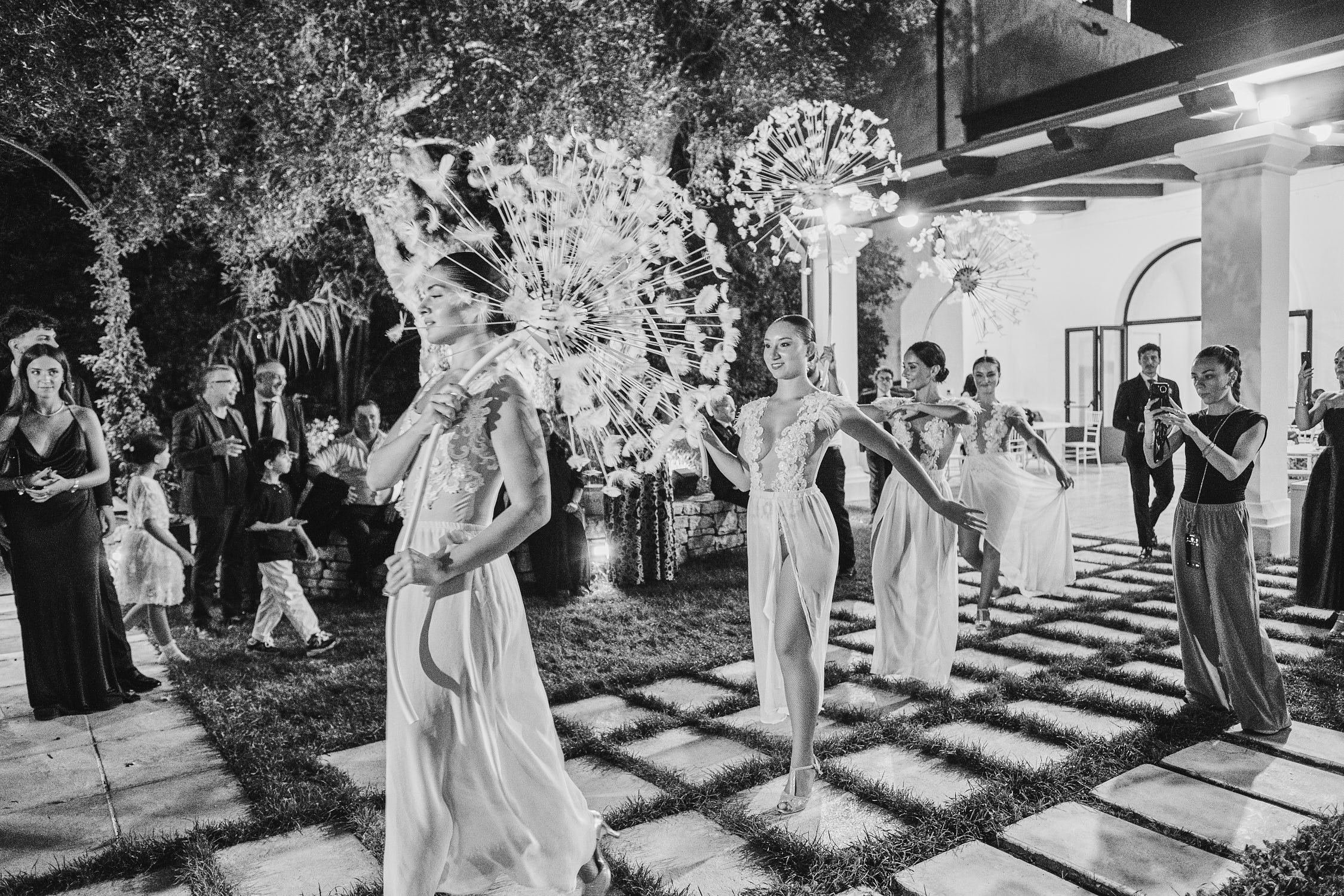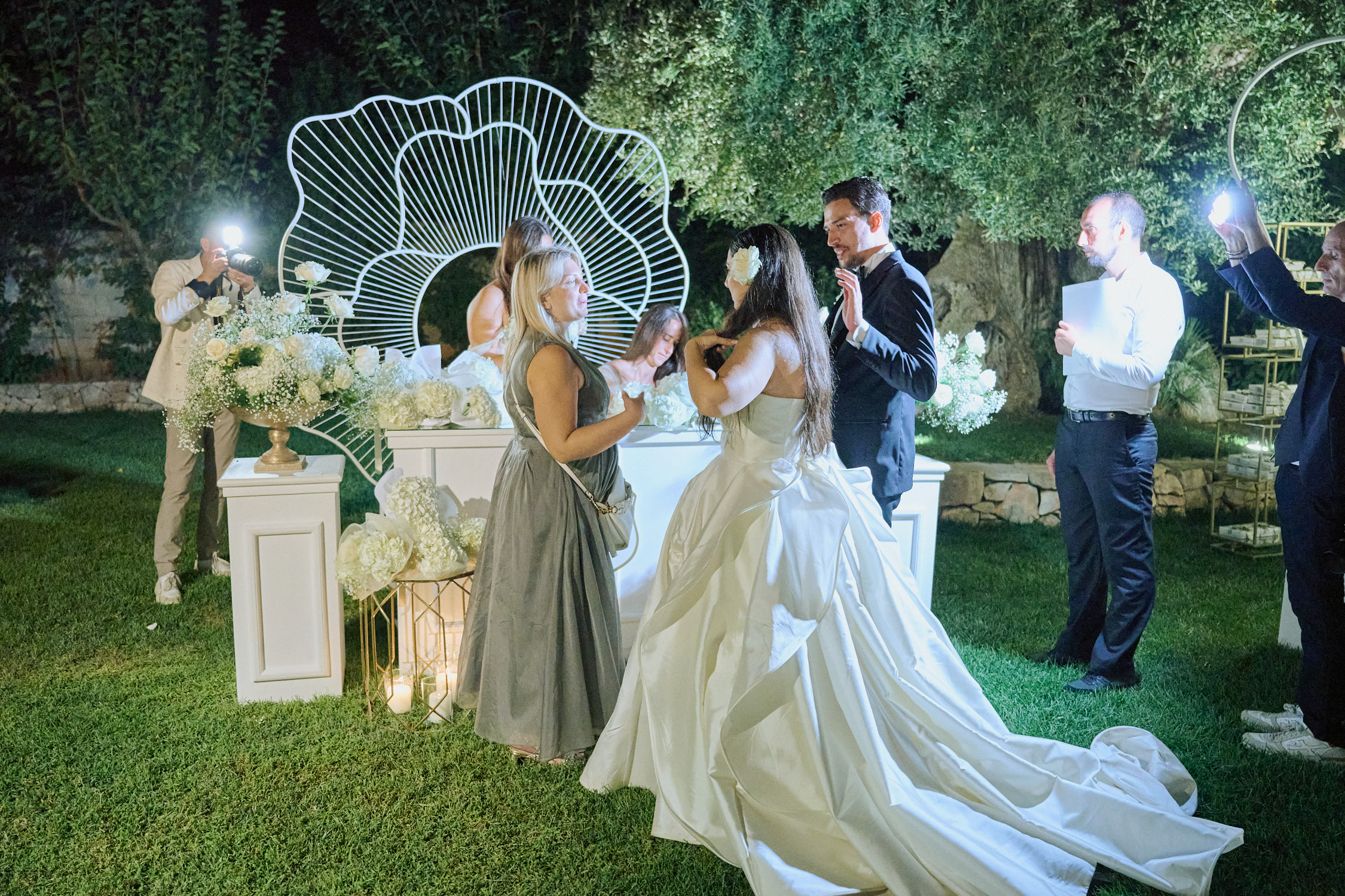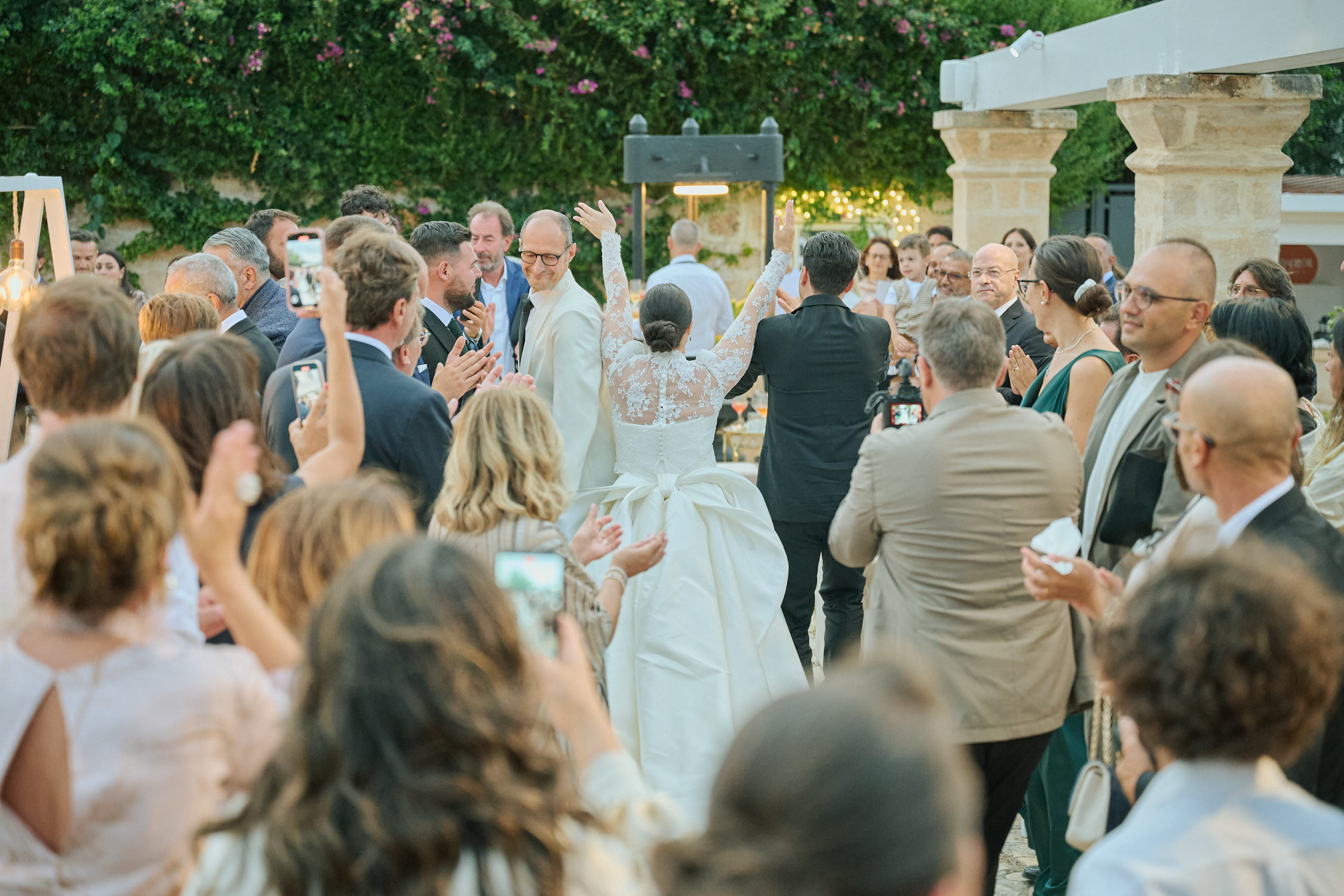 Per il loro matrimonio hanno scelto Ostuni come cornice e Masseria Montalbano come cuore della festa. Insieme a Serena Lobbene, la wedding planner che li ha accompagnati nell’intero percorso, hanno immaginato e costruito un evento popolato di artisti e di coreografie magiche, capaci di trasportare tutti in un vero e proprio mondo di bellezza.