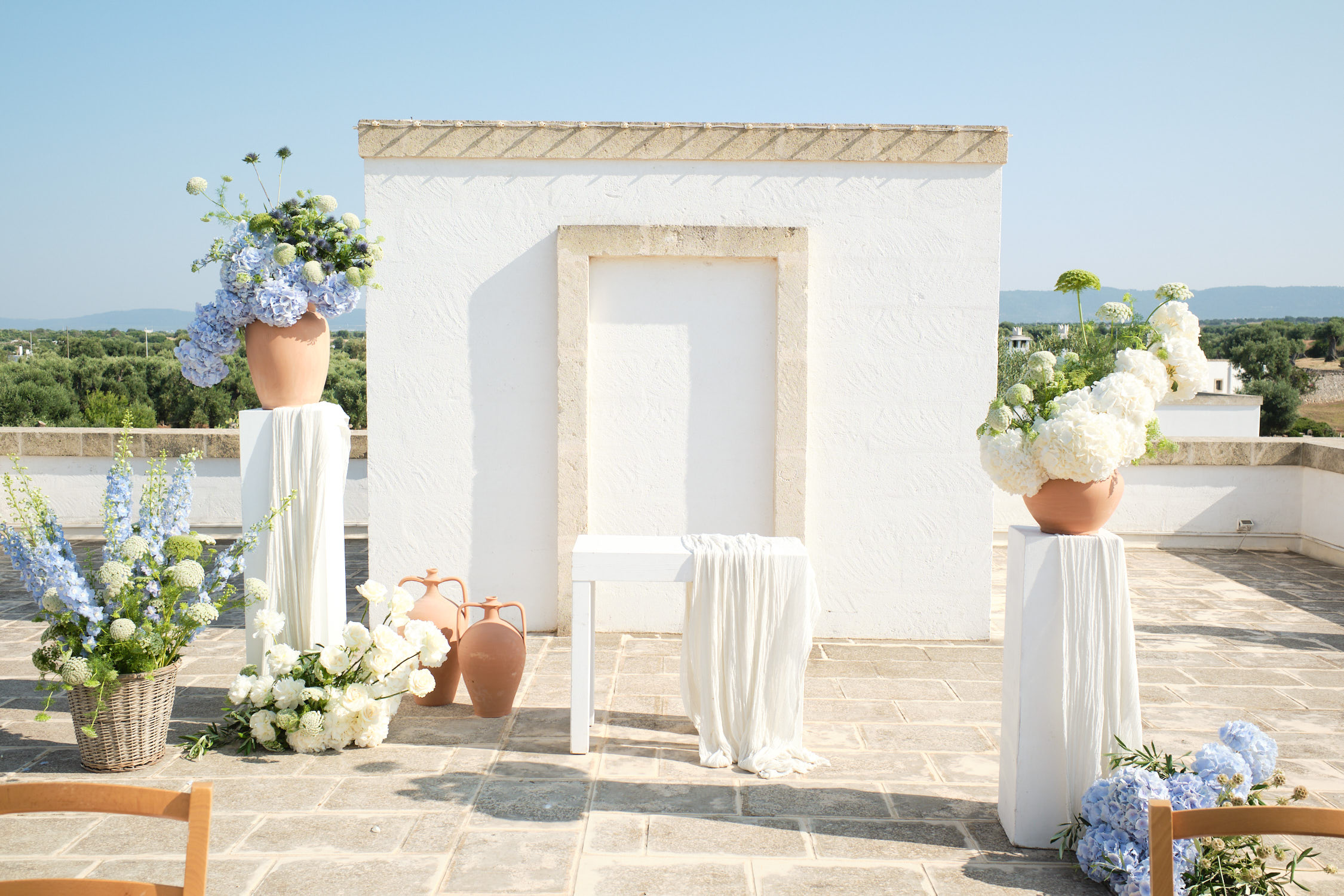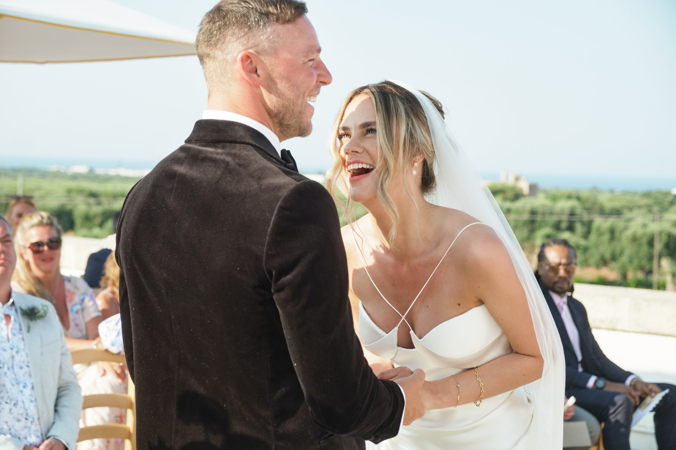 We chose our wedding venue in Puglia because it holds a special place in our hearts. Years ago, we took a road trip through this beautiful region and fell in love with its landscapes, charming towns, and the warmth of its people. It was during that trip that we shared some of our happiest memories- drives through olive groves and gorgeous dinners. We wanted our wedding to capture that same relaxed, joyful spirit- more like a holiday with friends than a formal event. It felt only natural to return to this place that means so much to us, and to share it with the people we love most.